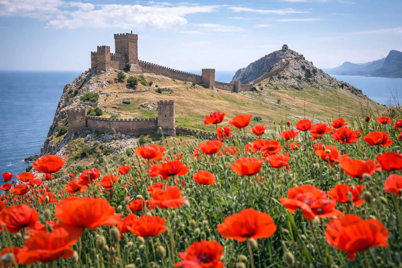 Генуэзская крепость в Судаке в мае работает без очередей и толп, позволяя вам осмотреть более 70 исторических объектов. Прогулка по тропе Голицына в Новом Свете подарит вам вид на дикие ирисы и бирюзовое море.